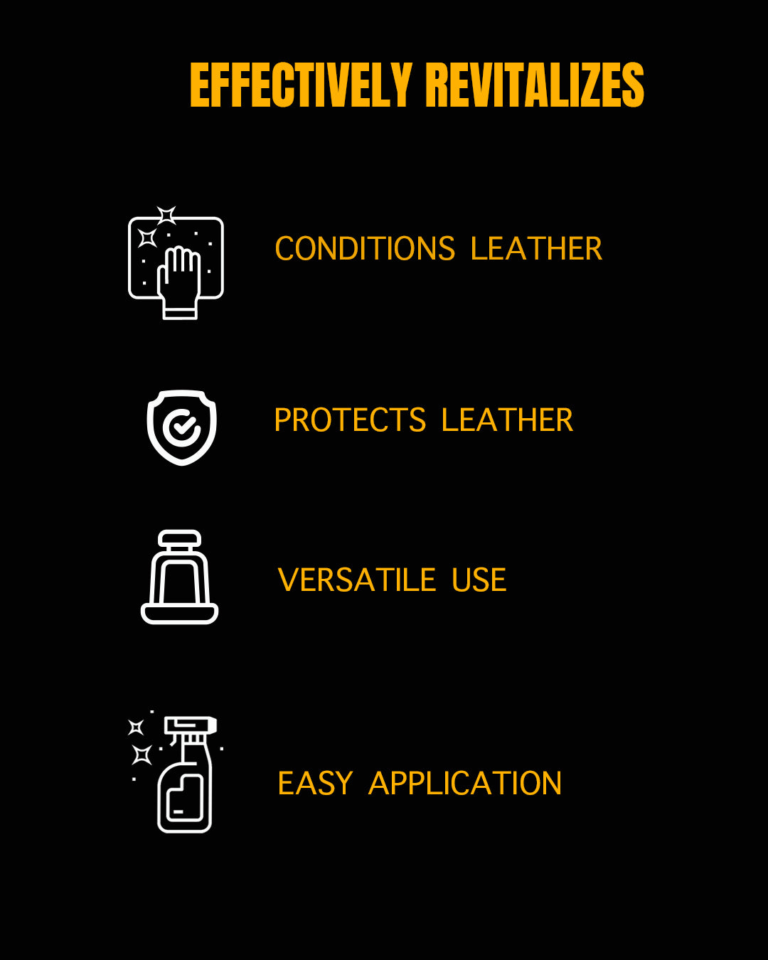- Rejuvenation: Effectively revitalizes leather by moisturizing the leather with each application.