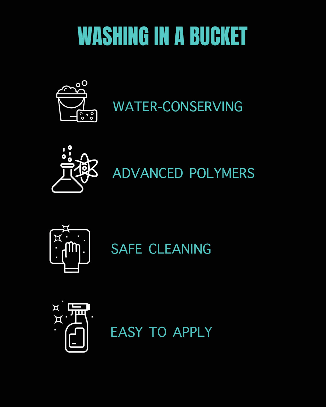 - Mix 1 oz. of Rinseless Wash per gallon of water in a bucket.