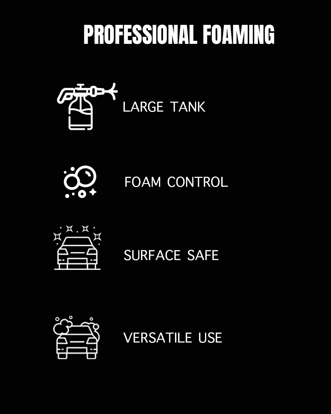- Thick Foam Application: Produces a rich, clinging foam for effective cleaning and lifting of dirt and grime from the vehicle's surface.