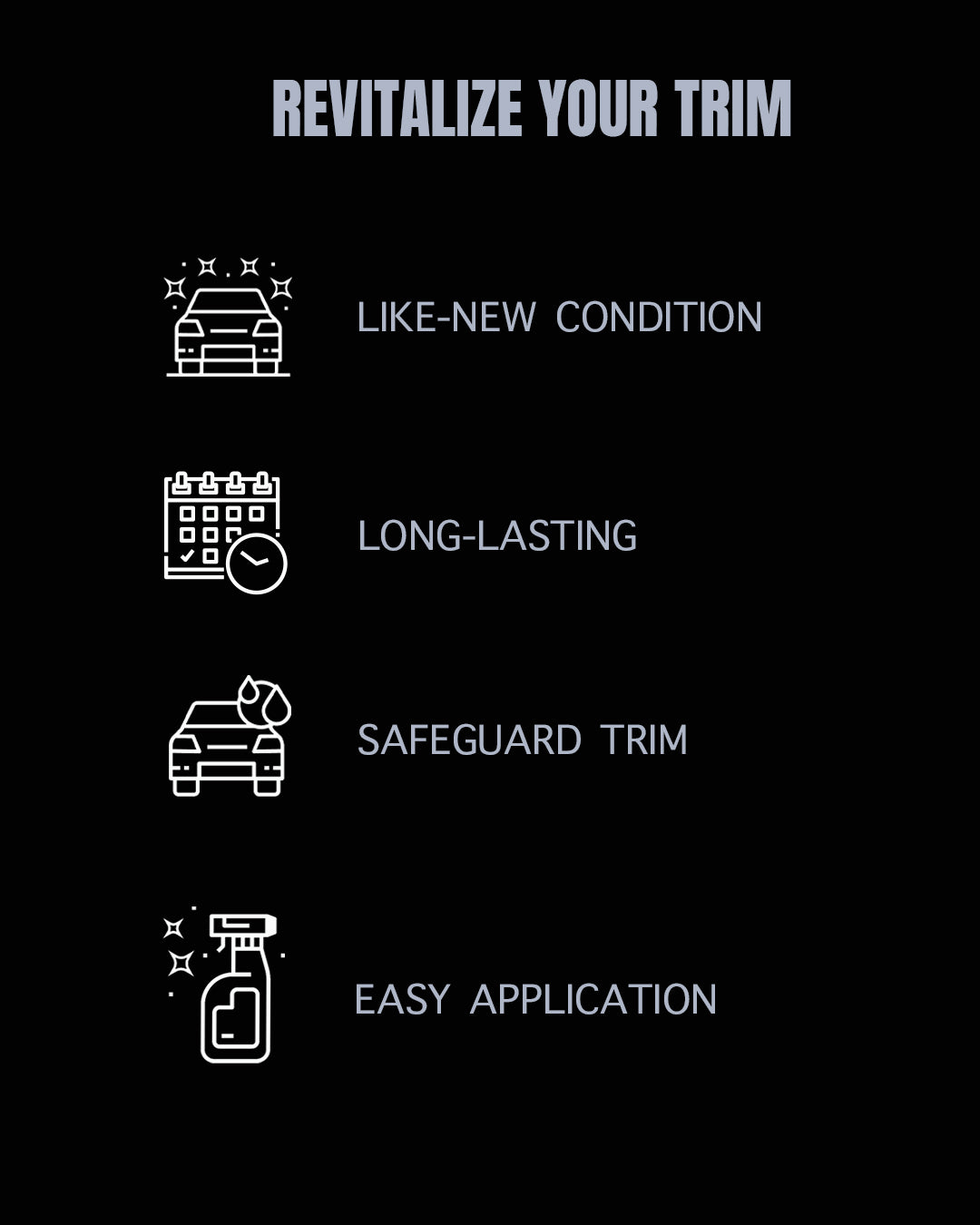 Long-Lasting Effect: The treatment lasts for months, ensuring the trim looks factory fresh for an extended period.
