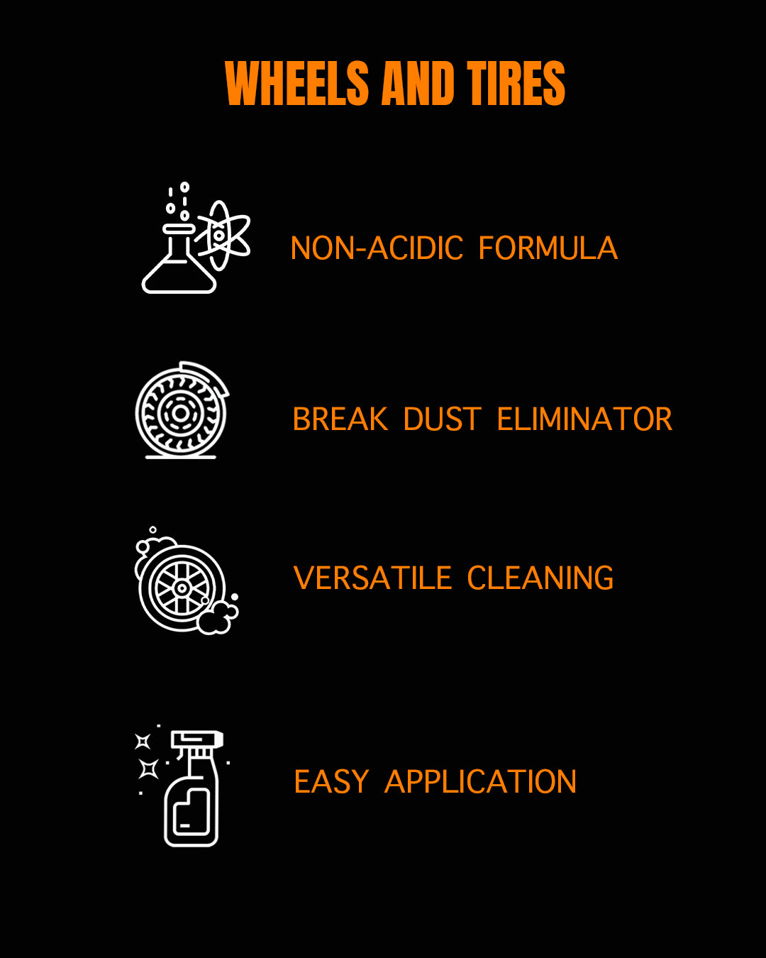 Deep Cleaning for Tires:Â Not just for wheels, this product also easily cleans tires, removing all traces of grime and residual tire dressing, leaving your tires looking as good as new.Â