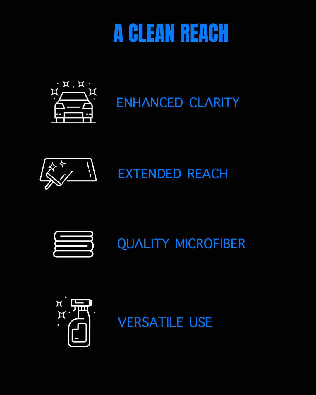 - Extended Reach Tool: Includes a specially designed tool to clean hard-to-reach glass surfaces effortlessly, promoting safety and convenience.Â