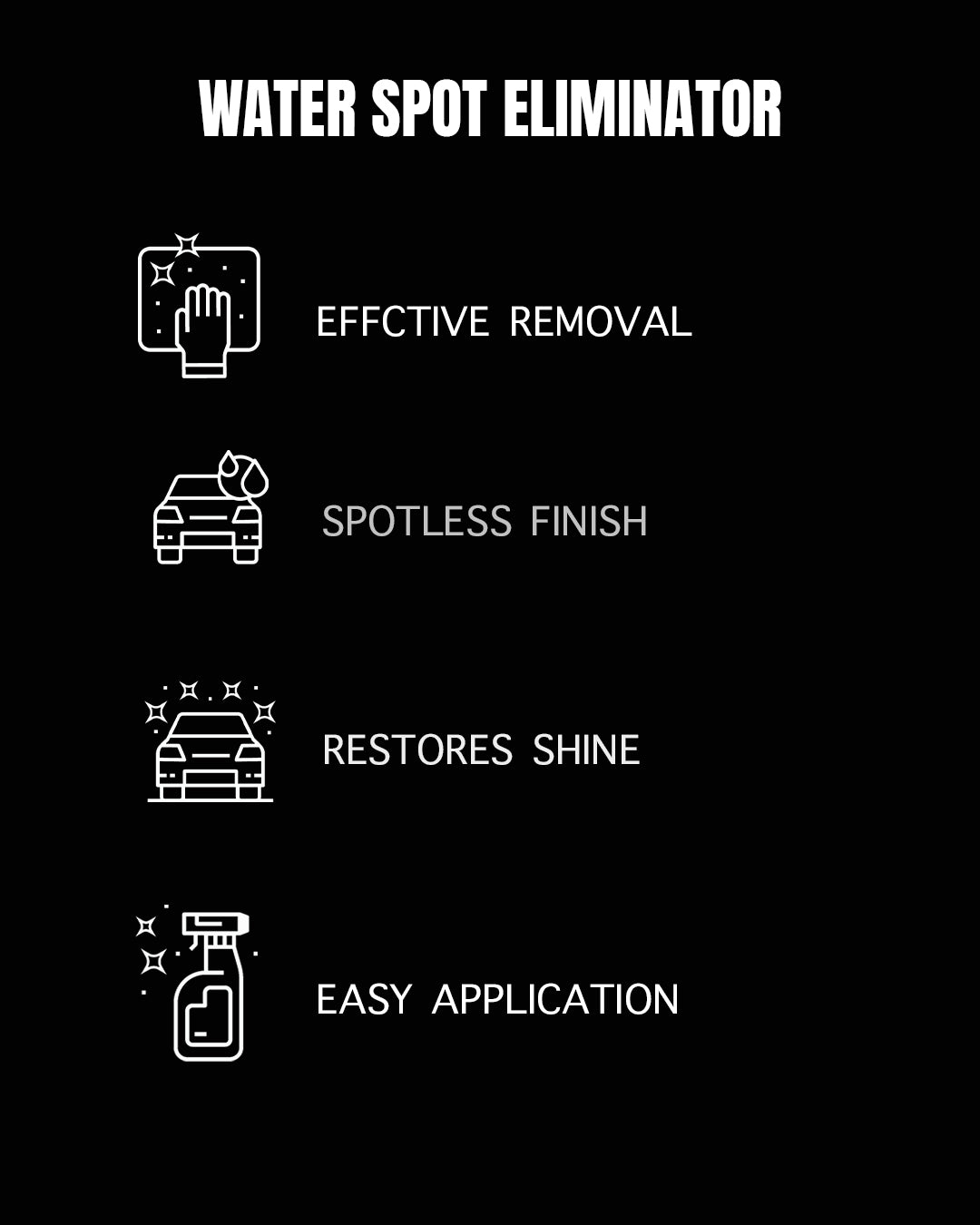 • Effective Removal: Safely eliminates tough water spots from vehicle surfaces.